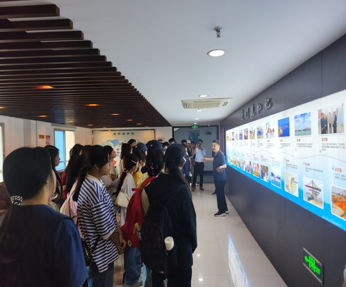 下午4时,师生又抵达临近的厦门邮轮中心码头,邮轮中心码头服务部总监徐总给大家详细讲解了邮轮中心码头的基础设施建设现状、运营现状和运作流程,为大家揭开了邮轮母港的神秘面纱。同学们还在此近距离参观了中远海运之星的客滚船,了解客滚船船体结构,感受深蓝与纯白的简约美学,领悟海峡两岸的温情纽带。