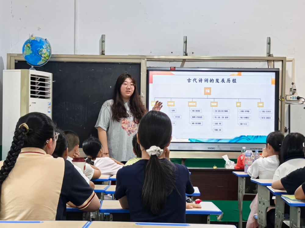 这场寓教于乐的古诗词课,在孩子们心中播下了热爱传统文化的种子,传承民族文化基因,也展现了实践队员以文化育人的青春担当。