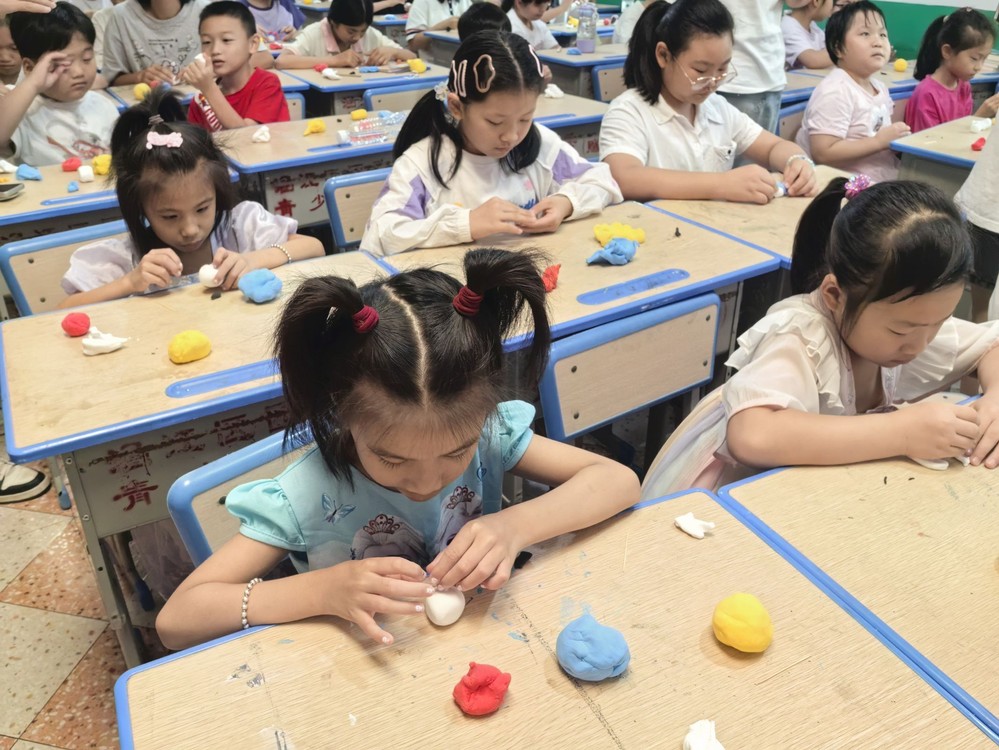 7月15日,sjb世俱杯官方网站“童”韵传薪赴莆田新墩暑期实践队在新墩留守儿童之家开展“巧手捏兔儿爷,传承老北京” 主题活动,通过制作粘土版北京兔儿爷,让孩子们在趣味互动中感受传统民俗的魅力。