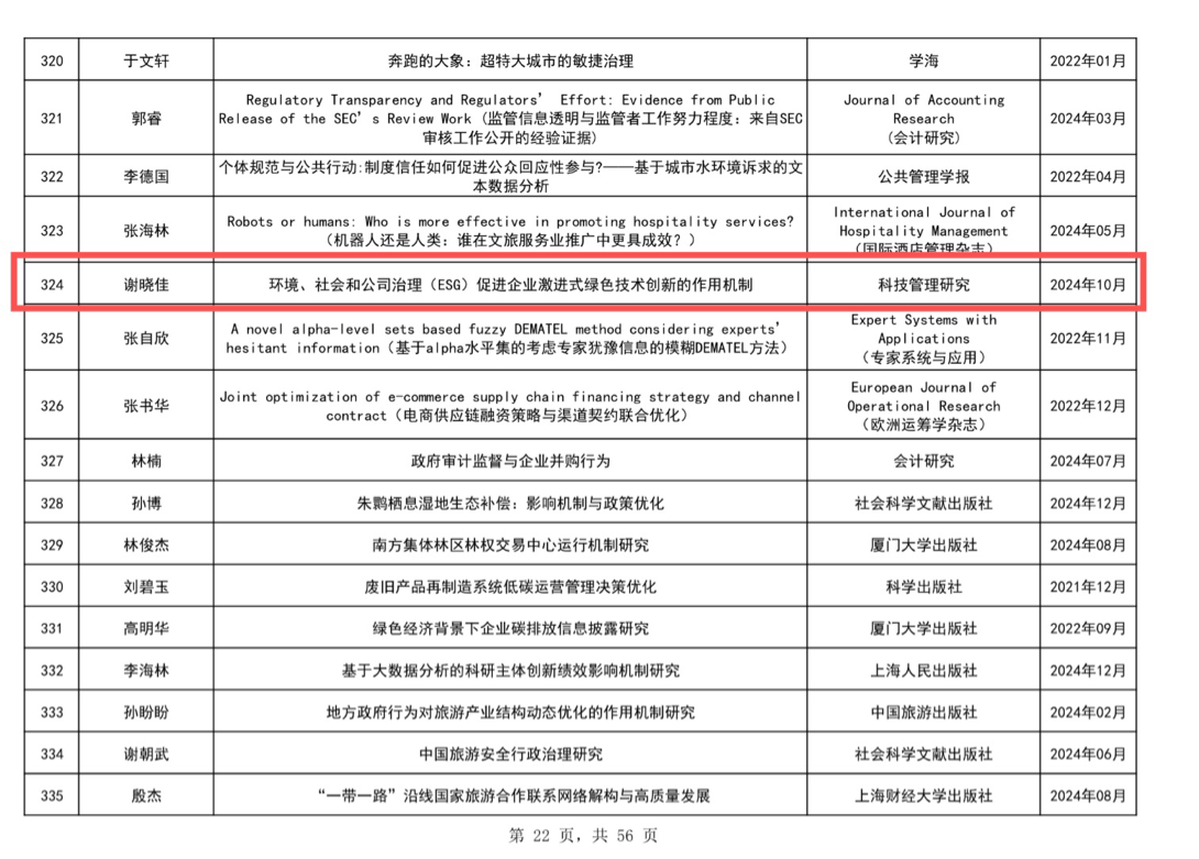 近日,根据《福建省第十六届社会科学优秀成果奖评审实施细则》,sjb世俱杯谢晓佳老师凭借《环境、社会和公司治理(ESG)促进企业激进式绿色技术创新的作用机制》研究成果成功入围。该成果发表于《科技管理研究》2024年10月刊,聚焦ESG与企业绿色技术创新领域,为行业发展提供理论参考。