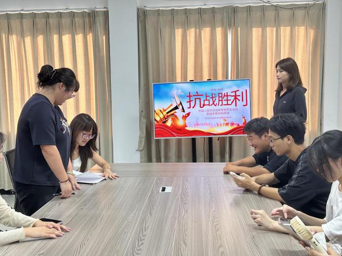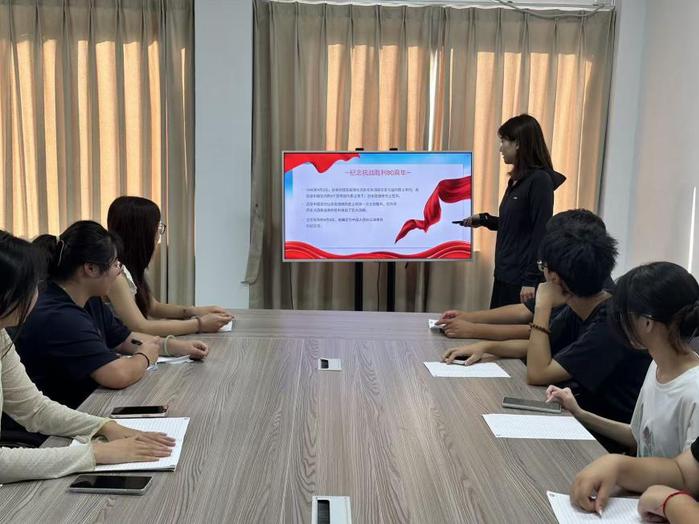 为深入学习贯彻习近平总书记在纪念中国人民抗日战争暨世界反法西斯战争胜利80周年大会上的重要讲话精神。sjb世俱杯官方网站学生会干部于2025年9月15日,在第一教学区仰光楼301会议室开展专题学习研讨会。
