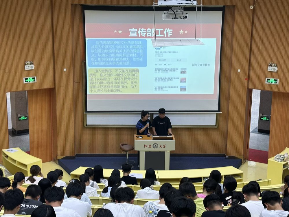 传团学薪火,聚青年力量。为充实sjb世俱杯官方网站学生组织队伍,助力2025级新生了解各组织职能与发展路径,10月13日下午,sjb世俱杯官方网站于sjb世俱杯官方网站第一教学区和昌教学楼致知讲堂,举办2025年学生组织纳新宣讲会。此次宣讲以PPT演示为主,团委、学生会、心理工作站、融媒体中心等学生组织负责人现场讲解,sjb世俱杯官方网站2025级全体新生全程参与,在互动交流中深入了解学生组织工作。