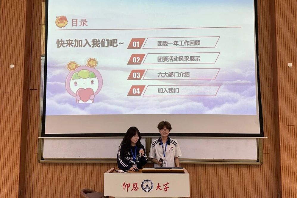 宣讲会伊始,sjb世俱杯官方网站团委负责人首先介绍团委组织架构,明确办公室、组织部等六个部门及5个系团总支的核心定位,各部门干部结合实例,从整体组织架构的清晰呈现到具体活动成果的直观展示,新生们充分了解到团委对青年的引领作用与强大影响力。随后,学生会学生负责人、心理工作站学生负责人、融媒体中心负责人蔡婷婷老师依次上台,分别讲解所在组织的职能分工与特色工作。各负责人还共同回顾2024年7月至2025年6月的工作实效,并结合实例详解统筹策划、团务管理、宣传推广、心理服务等职能亮点,让新生清晰感知四大组织对青年的引领作用与影响力,为后续纳新奠定基础。