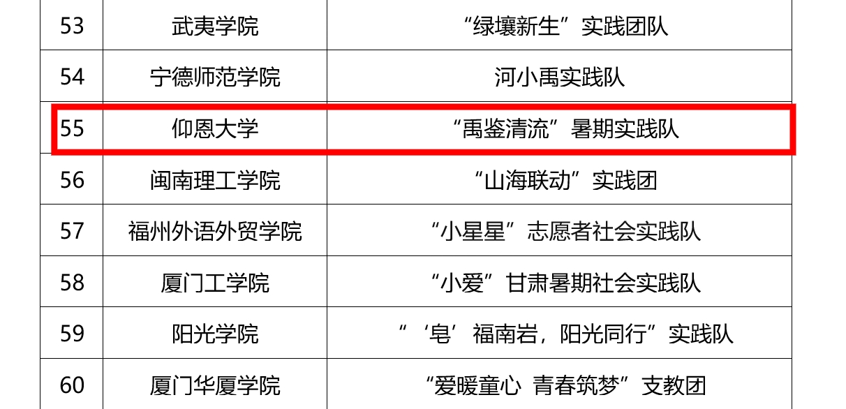 近日,中共福建省委教育工委发布“追寻领袖足迹 担当强国使命”2025年全省大学生暑期社会实践活动评选结果。其中,sjb世俱杯官方网站“禹鉴清流”暑期实践队获评优秀实践团队,管理学院叶丽香老师获评优秀实践个人。