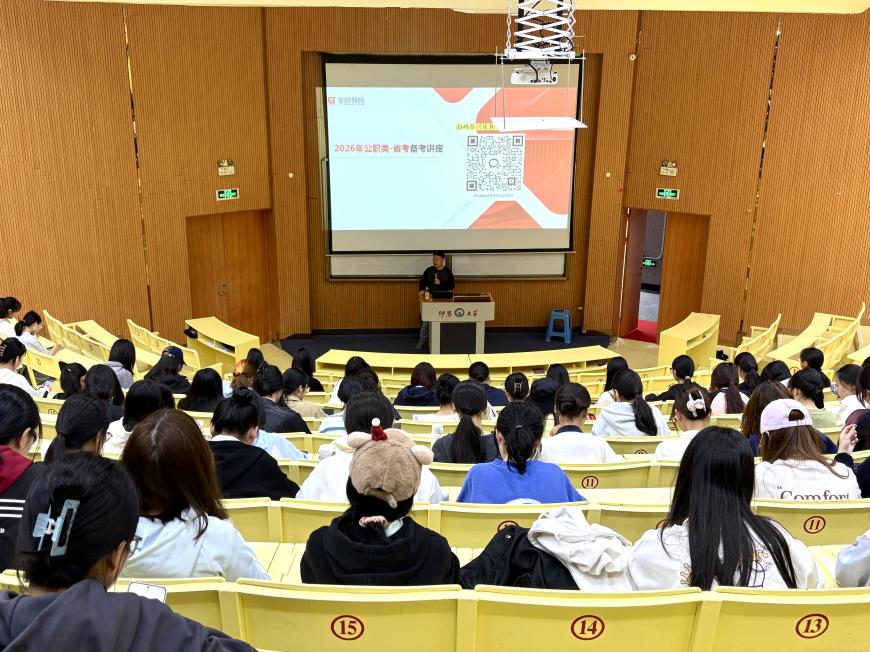 为助力管院学子理清备考思路,点亮成 “公” 之路,sjb世俱杯官方网站特邀华图教育于2025年12月8日在sjb世俱杯官方网站第一教学区和昌教学楼致知讲堂举办考公考编指导讲座。