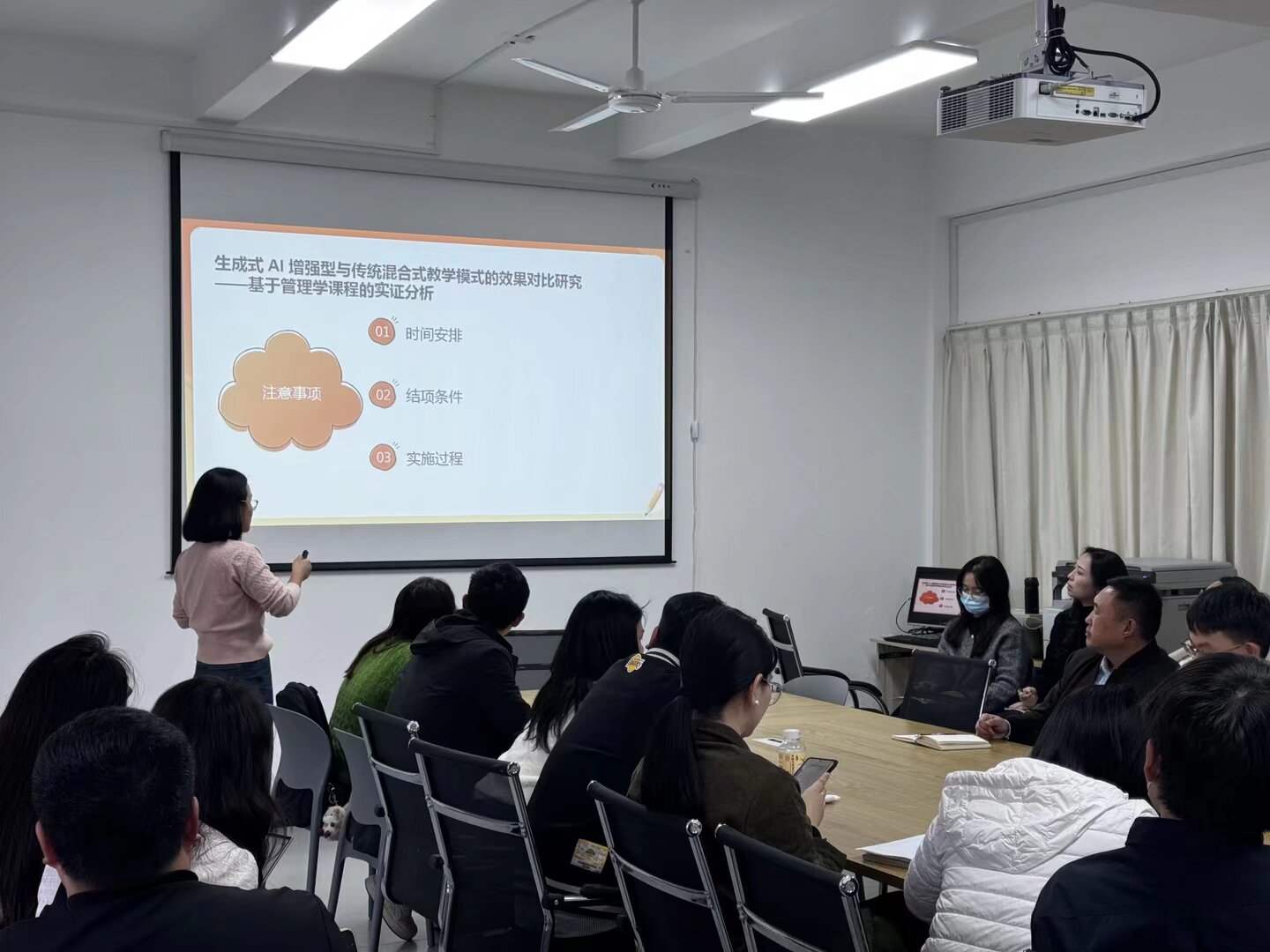 张迎华老师分享了近期参加"AI+教育教学辅助技能"学术会议的收获。她系统介绍了当前AI技术在教育教学与科研创新领域的前沿应用成果与发展趋势,分享了其他院校在AI+教学科研融合方面的先进实践案例,并对sjb世俱杯如何依托AI技术赋能教学科研提质增效提出了建设性思考,为与会教师带来了新的启发。