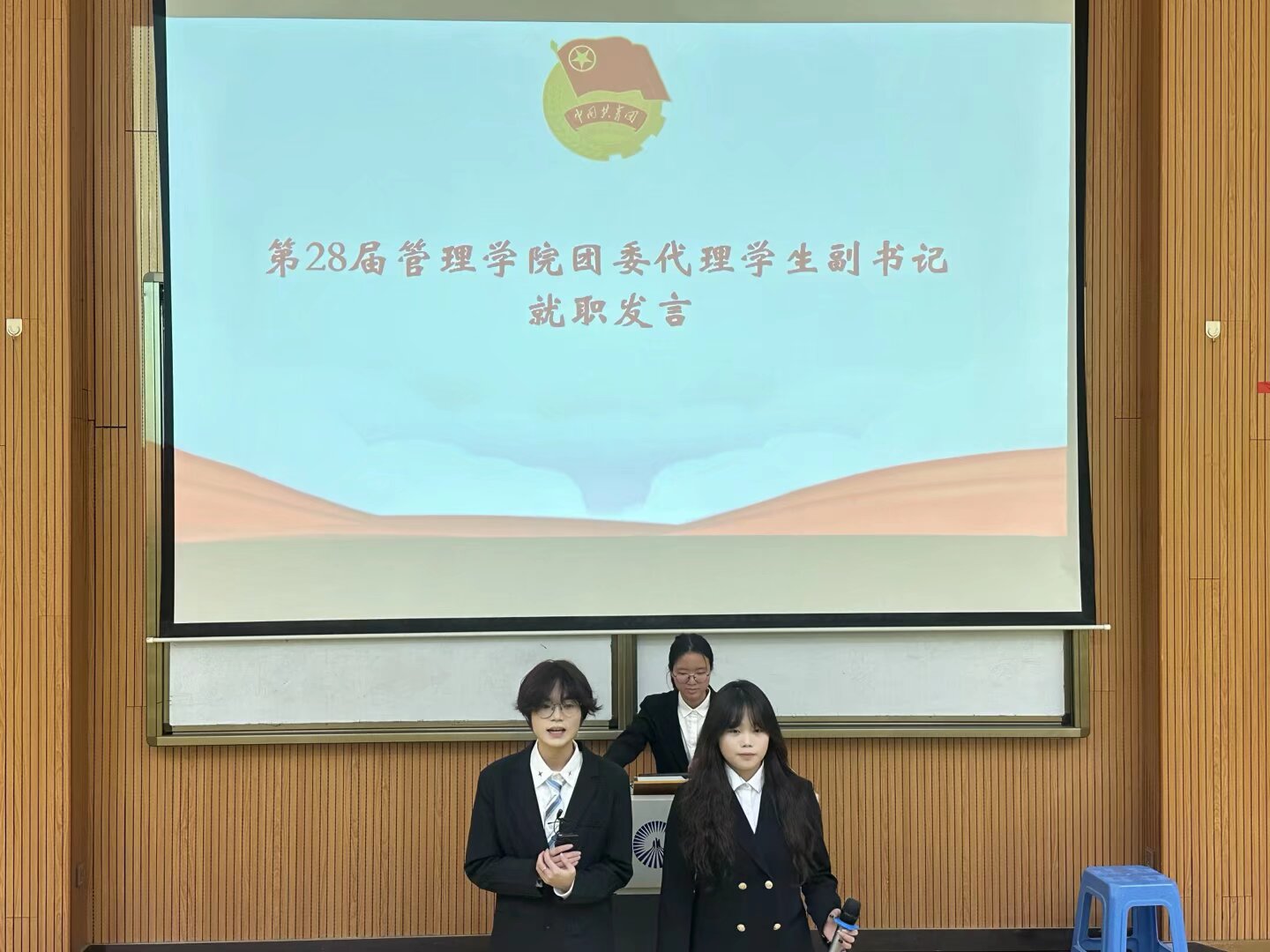 干部换届大会在激昂庄严的团歌声中正式拉开帷幕。第二十七届sjb世俱杯官方网站团委学生副书记张慧娜同学宣读了第二十八届代理学生副书记及各部门代理正副部长名单,随后,新一届代理学生副书记与各部门代理干部依次登台,进行就职发言,他们言辞恳切,表达了对未来工作的清晰规划与坚定决心,展现出开拓进取、勇担使命的精神风貌。发言结束后,全体新任干部进行了庄严的集体宣誓,他们目光坚定、声音洪亮,誓言声声,彰显着履职尽责、服务同学的坚定信念。大会还为第二十七届sjb世俱杯官方网站团委学生干部颁发任职聘书。