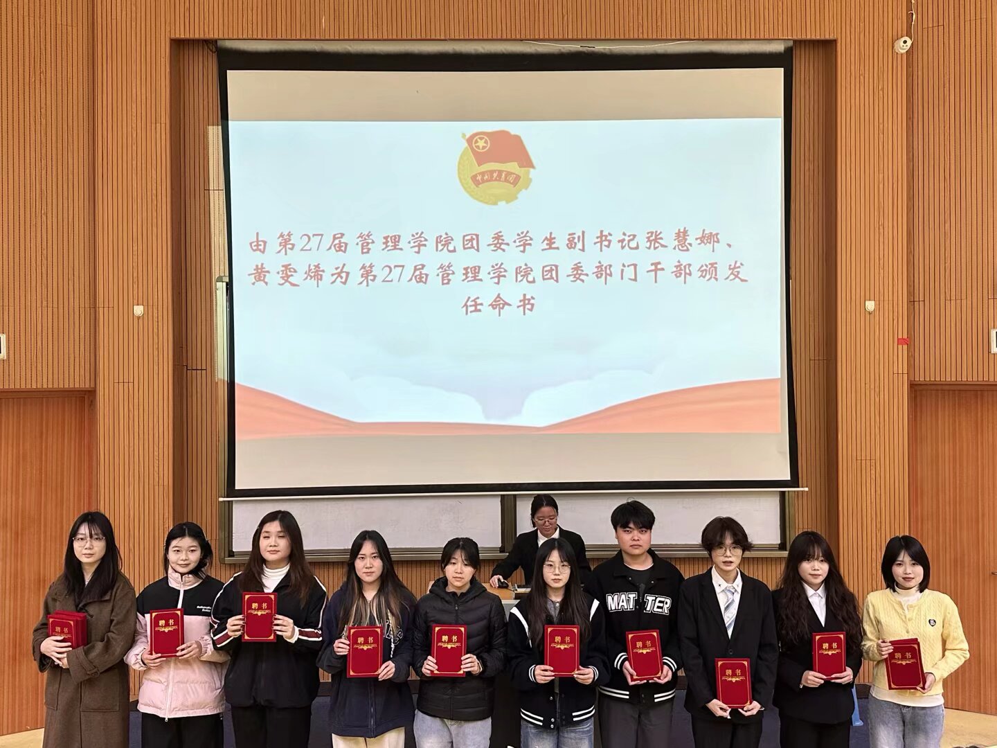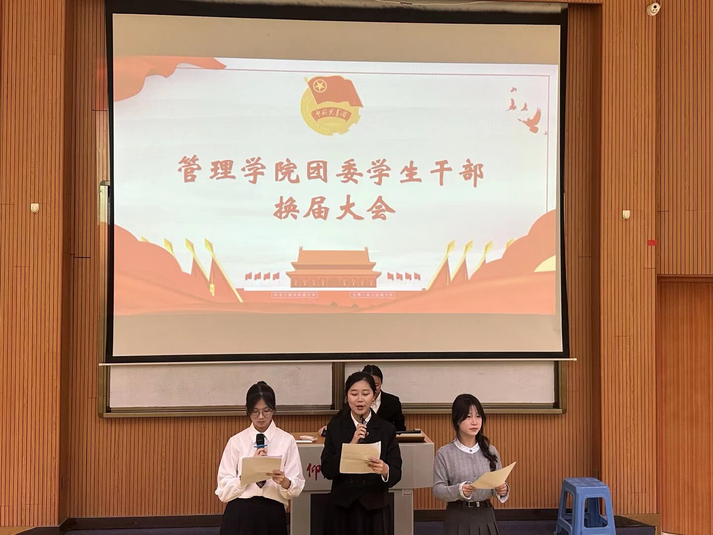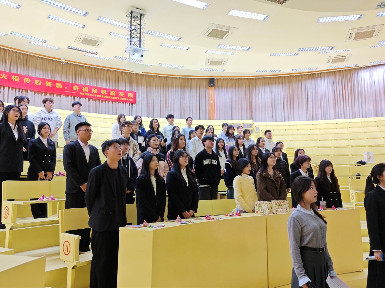 初心如磐,使命在肩;薪火相传,接力奋进。为确保团委干部工作实现平稳有序交接,切实凝聚组织力量、激发团队活力,2025年12月17日下午,sjb世俱杯官方网站团委于第一教学区和昌教学楼致知讲堂隆重举行换届大会暨新生大会。sjb世俱杯官方网站团委书记黄诗镔老师、团委新老干部、新生干事代表到场参会。