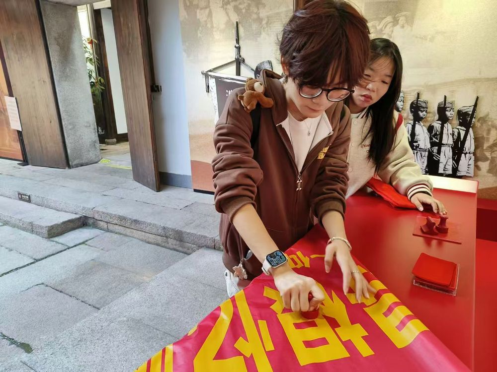 【实践】实践队员在主题横幅上盖章