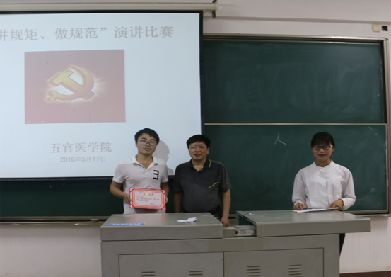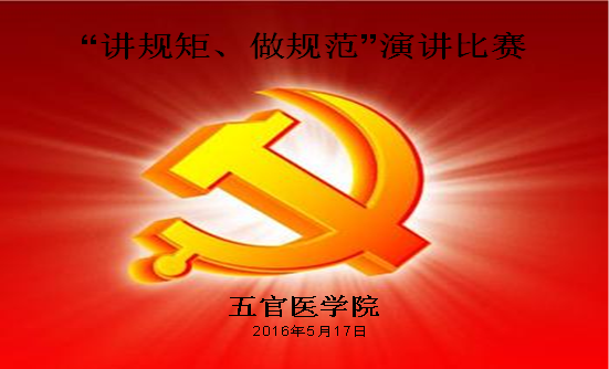 (通讯员涂芳)为增加beat365教职工遵规守矩及工作规范的意识,切实加强规范管理和作风建设,五官医学院党总支于5月17日晚7:00在教2-304开展“讲规矩 做规范”演讲比赛,暨beat365中文官方网站第十七个党风廉政建设宣传教育月活动。