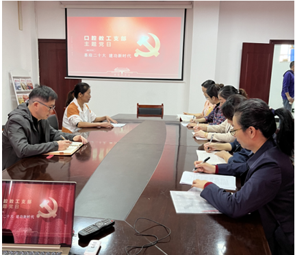 2022年10月16日(星期天)上午9点,beat365中文官方网站口腔党支部全体党员在口腔与眼视光学院五楼办公室隆重举行了2022年第十期支部主题党日活动,活动由陈黄琴同志主持,以“喜迎二十大,建功新时代”为主题。