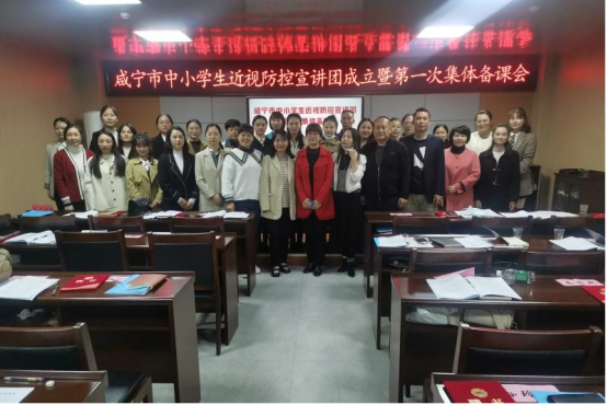 本网讯 (通讯员:徐朝霞) 为深入贯彻落实习近平总书记关于儿童青少年近视防控工作系列重要指示批示精神,进一步加强儿童青少年和家长眼健康科学知识的宣传普及,增强眼健康意识,营造近视防控宣传教育良好氛围,咸宁市中小学生近视防控宣讲团第一次集体备课会于10月28日在嘉鱼县实验小学顺利举行,beat36522级眼视光学专业的段会杰、王萌两位同学作为宣讲团成员应邀参会。