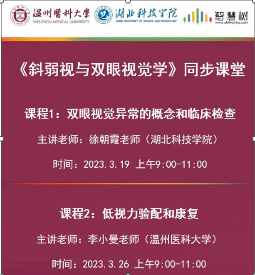 (通讯员:徐朝霞) 为深入推进教学改革创新,进一步加深校际合作交流,继3月19日beat365与温州医科大学开展《斜弱视与双眼视觉学》同步课堂之后,3月26日两校再次开展第二次同步课堂教学,此次课程内容为低视力康复与验配,主讲老师温州医科大学李小曼老师与beat365中文官方网站徐朝霞老师一起,给同学们呈现了一堂内容丰富、互动频繁的精彩课堂。