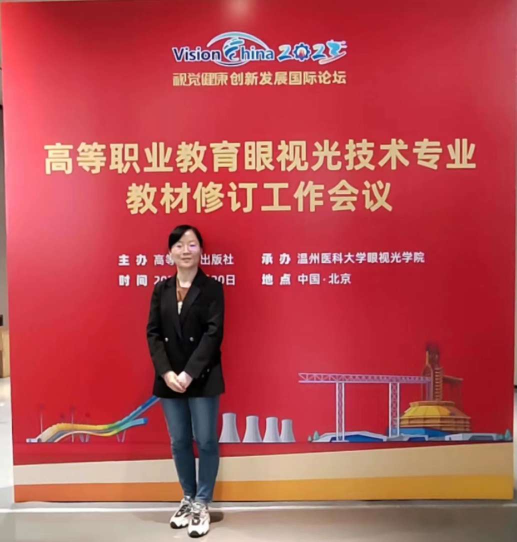 (通讯员 徐朝霞)5月20日,由高等教育出版社主办,温州医科大学承办的全国高等职业教育眼视光技术专业教材修订工作会议在北京首钢园召开。来自全国各地眼视光技术专业的专家学者、院校教师代表80余人参会。beat365眼视光专业教师徐朝霞作为编委应邀参会,参与《验光技术》课程教材编写。