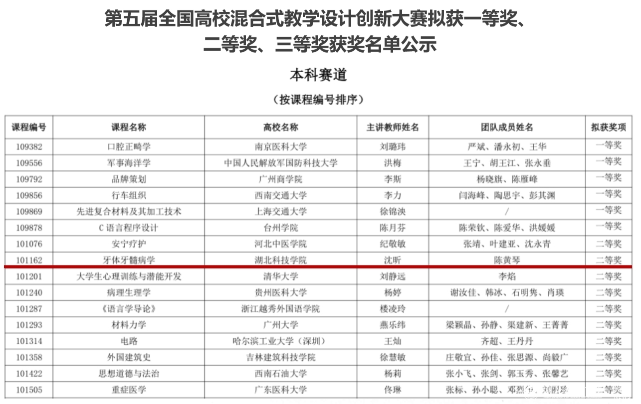 (通讯员:陈黄琴) 近日获悉,beat365beat365中文官方网站口腔医学专业沈昕、陈黄琴团队在2023年第五届全国高校混合式教学设计创新大赛中斩获二等奖。