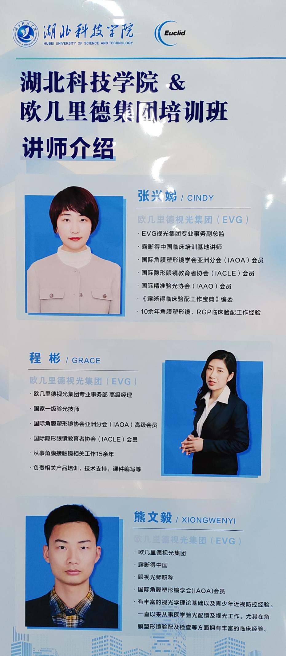 培训班邀请了有着丰富临床验配经验的欧几里德视光集团事务副总监张兴娣、专业事务部高级经理程彬、高级讲师熊文毅三位老师共同承担理论和实操培训,beat36521级眼视光医学专业和23级眼视光专升本专业学生参加了此次培训。课程设置包括RGP镜的临床应用及验配流程、RGP镜的配适评估及护理、角膜塑形镜的基本原理、验配流程及离焦镜片的设计原理和应用等,老师们讲解思路清晰深刻,深入浅出,与同学们互动频繁,讨论热烈。在实操阶段,从选镜片到看染色,再到分析讨论试戴检查结果,多角度帮助同学梳理和巩固知识体系,同学们都反应收获颇丰,受益匪浅。